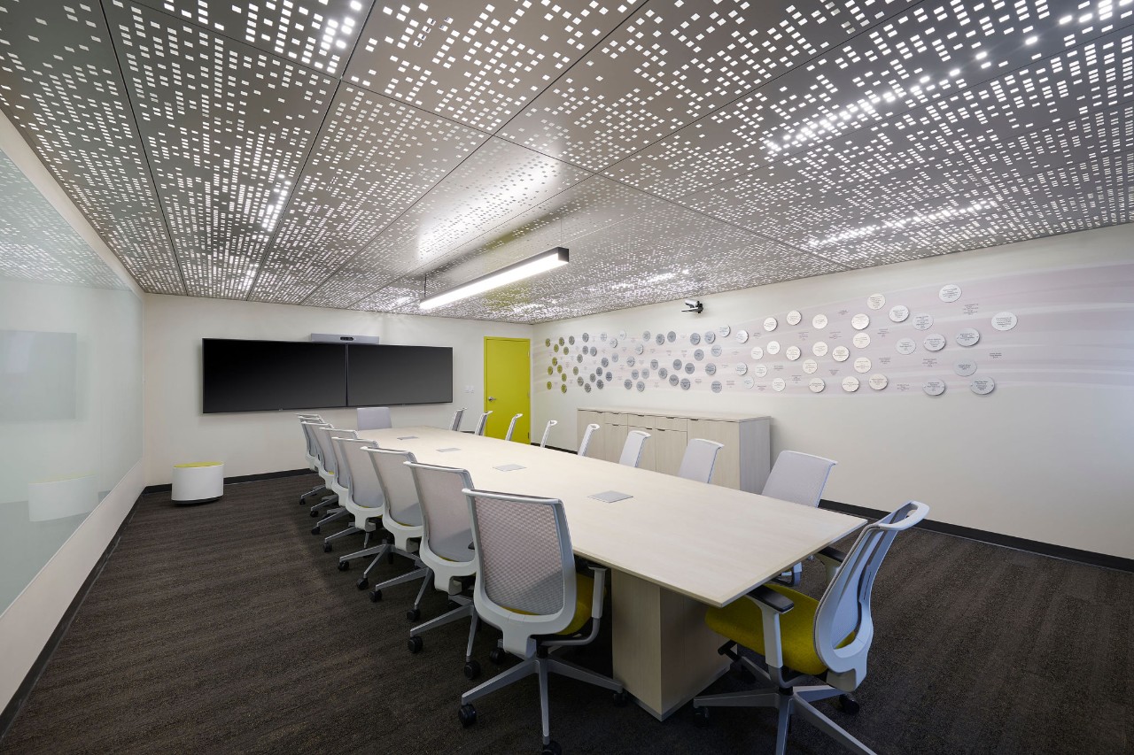 Completed in 2019. Genoa Design International provides design and 3D modeling services to shipbuilding and offshore industries with offices St. John’s Newfoundland, Vancouver, BC and New Orleans, LA . With much video conferencing client looking for spectacular conference room. After a product review with Carville & Helms associates they took a liking of the Juniper Celebration panels on the back page of the product catalogue, budget pricing came within reach of expectations.