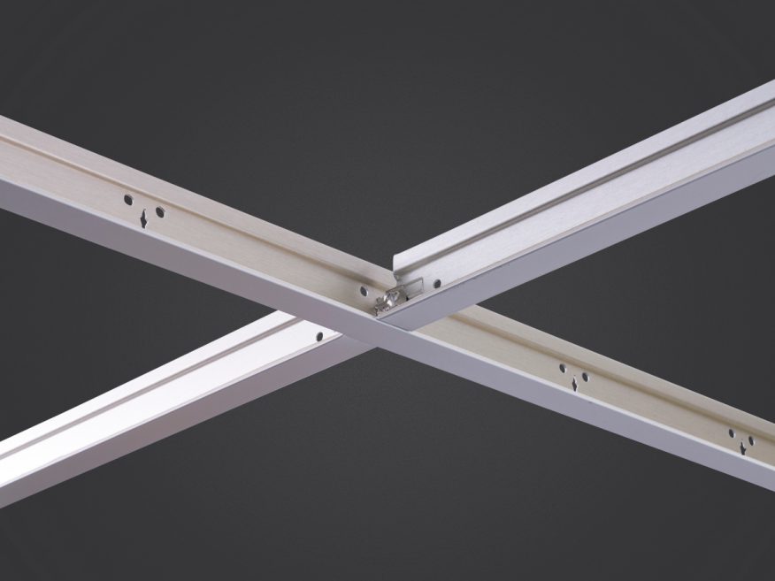 Donn® Brand AX™/AXCE™ 15/16" Acoustical Suspension System is made of double-web aluminum and is connected with plug-in positive-lock insertion for quick installation and removal without tools. It's high corrosion resistance makes it ideal for use in high humidity environments, controlled environment and healthcare applications.