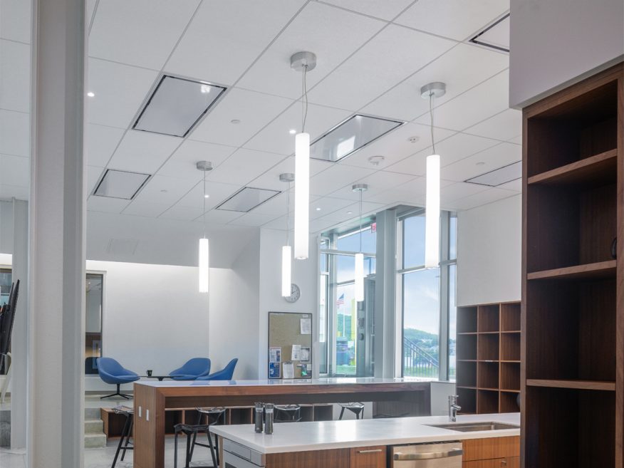 With the Donn® Brand Identitee® DXI™ 9/16" Acoustical Suspension System installing various sizes, patterns and linear channels can be done quickly and easily. It's refined 9/16" dual reveal profile eliminates concerns with notches and mitered intersections, creating perfect compatibility with Logix™ Integrated Ceilings systems.