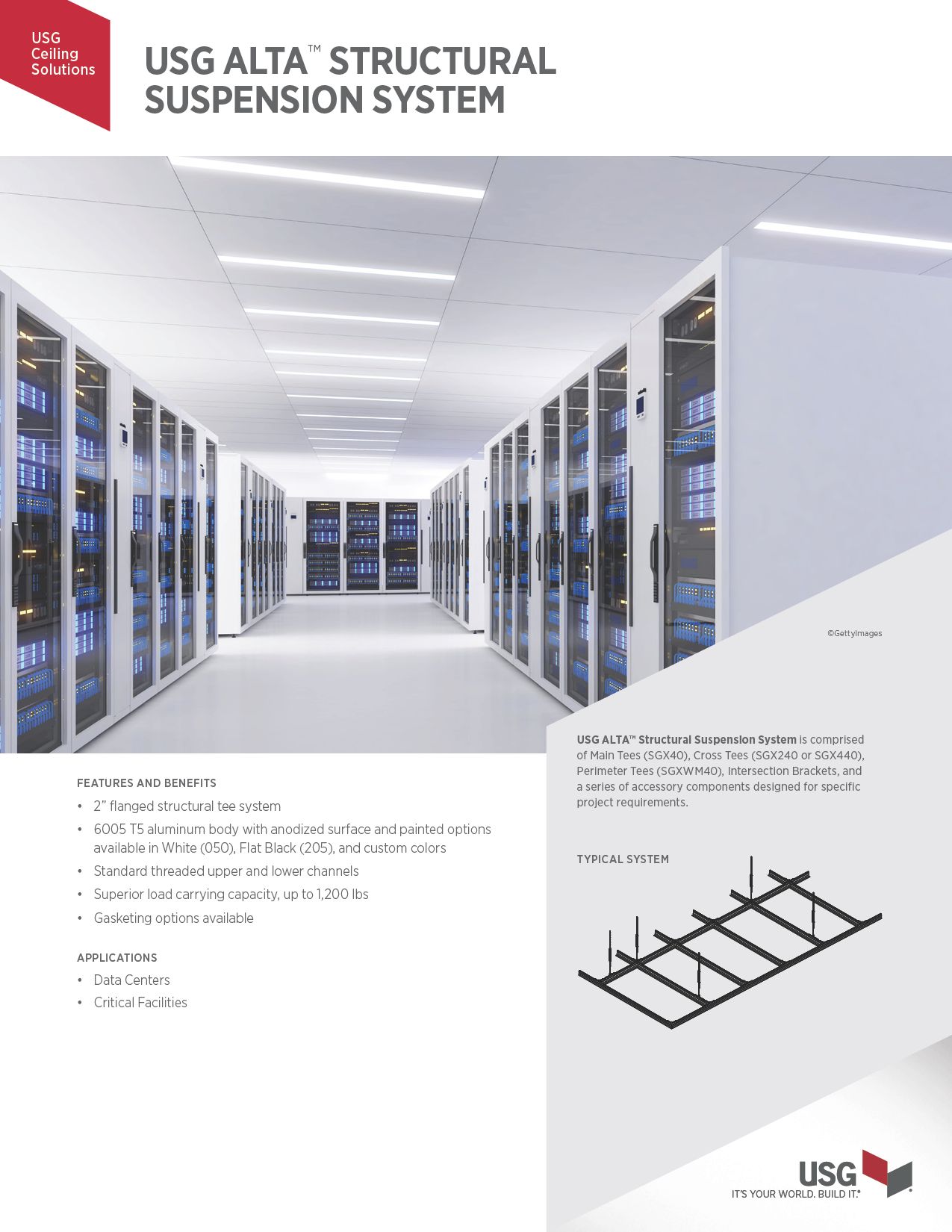 Mineral fiber, fiberglass, or gypsum panels integrate seamlessly for a complete ceiling system to support structural suspension and hot-aisle and cold-aisle containment needs.
